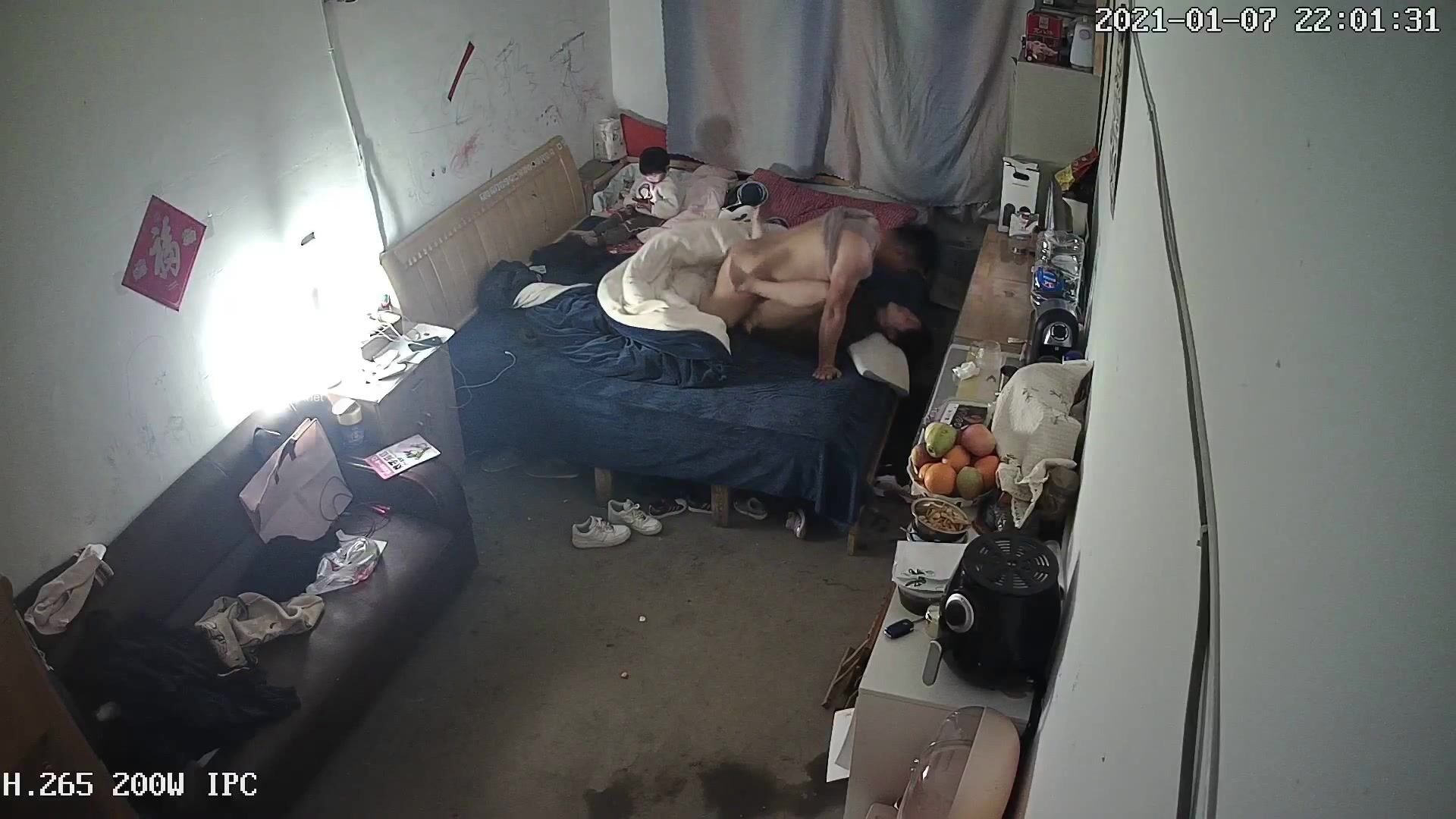 《破解家庭网络摄像头》监控偷拍爸爸和妈妈在操逼孩子在一旁淡定玩手机