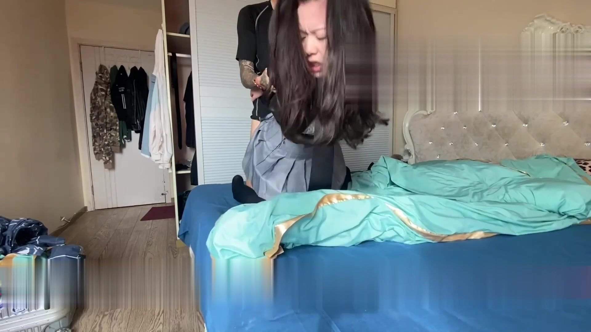 女神级性感气质白领美女和公司领导下班酒店偷情啪啪时突然接到男友电话查岗,男的边干女的边接电话.国语!