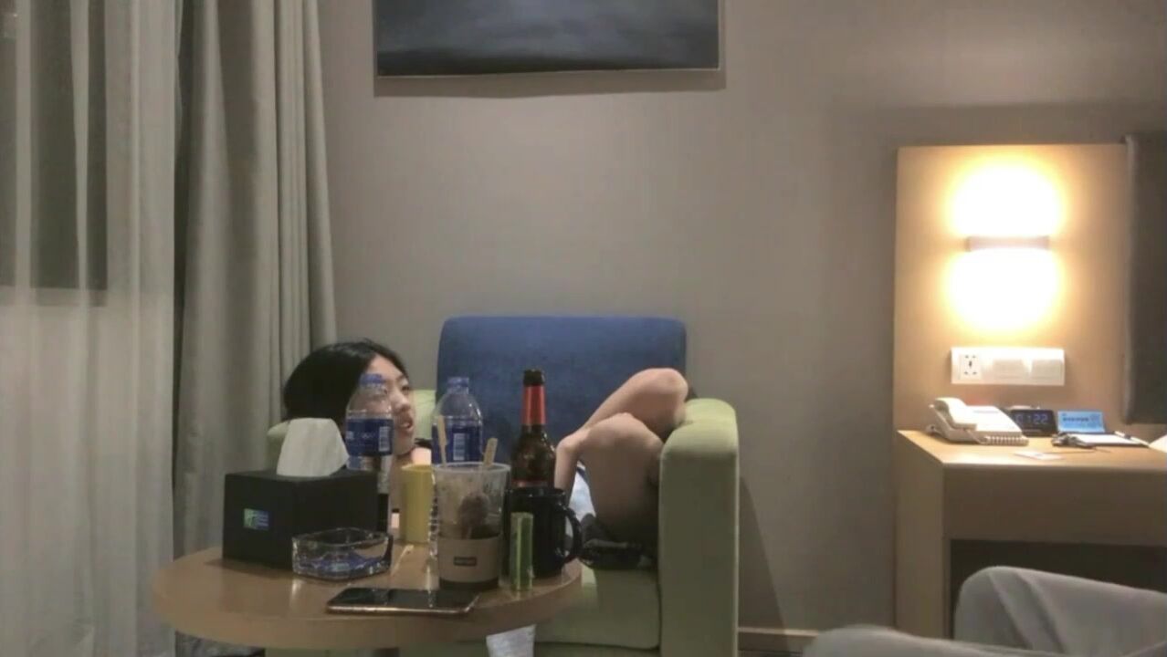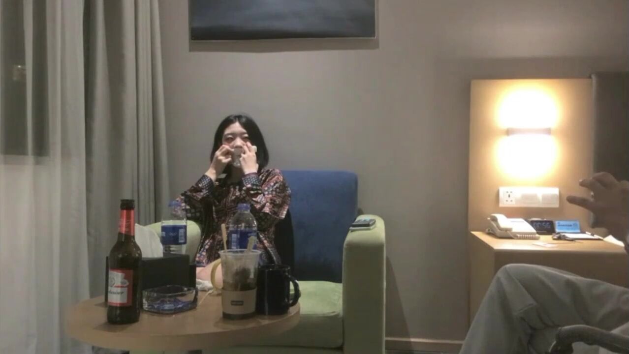 两个欠钱的妹子被拉到酒店直播抵债